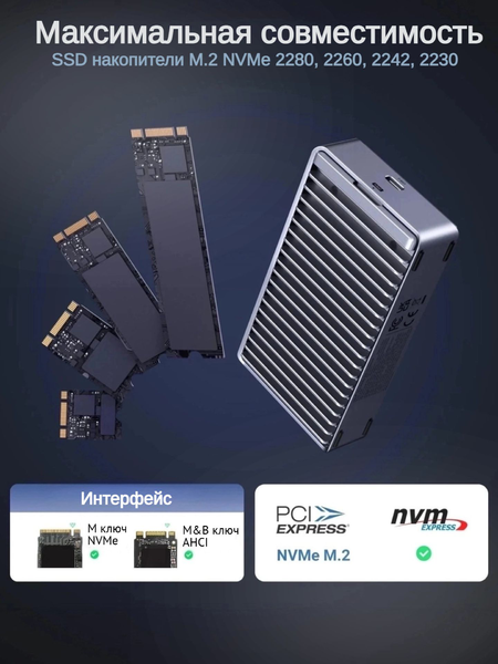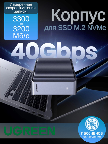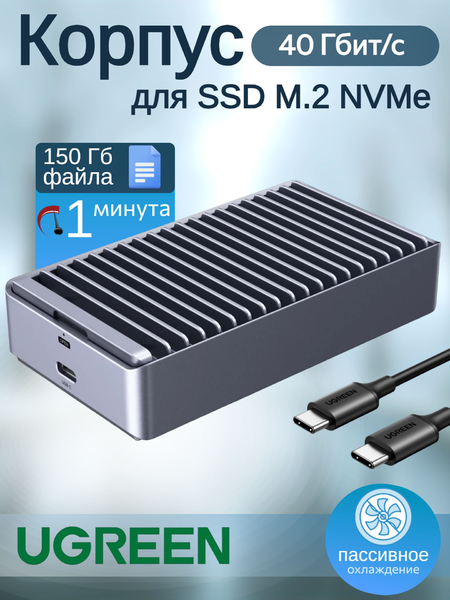 Внешний корпус UGREEN DualRibbed Quiet Box D700 для дисков SSD NVMe PCI-E M-ключ