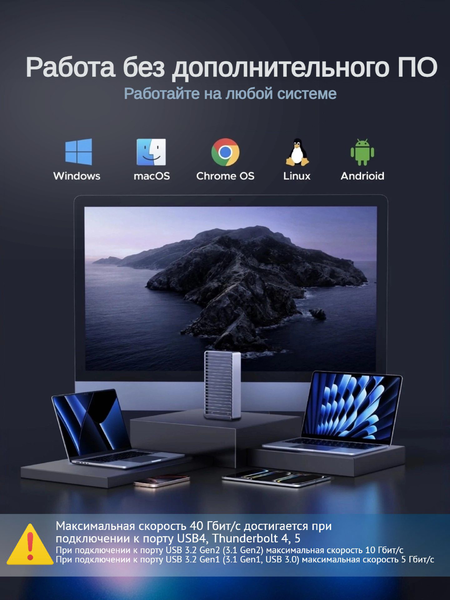 Выход: USB 4 40Gbps (совместим с Thunderbolt 3, 4, 5)