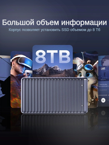 Чтобы получить максимальную скорость (~3500/3500 Mbps) необходимо подключать комплектным или аналогичным кабелем к порту USB-4, Thunderbolt 4.