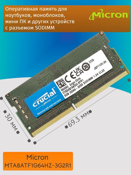 Оперативная память для ноутбуков, моноблоков, мини ПК и других устройств в разъемом SODIMM
