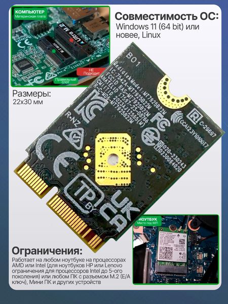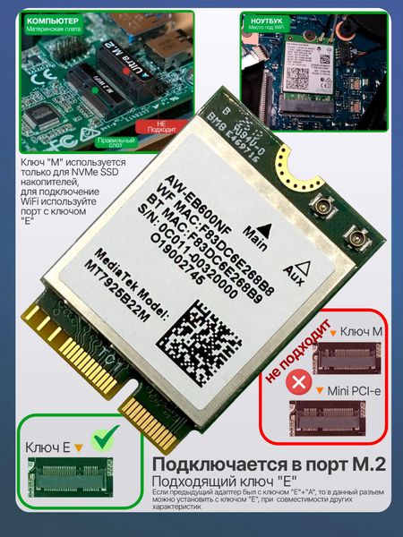 Подключение: слот M.2 WiFi ключ E