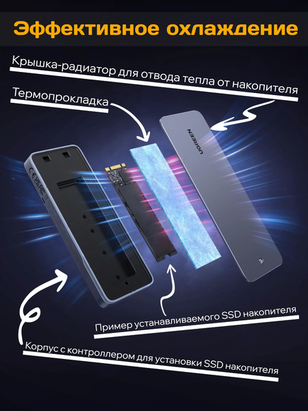 Внешний бокс UGREEN для дисков SSD NVMe PCI-E M-ключ
