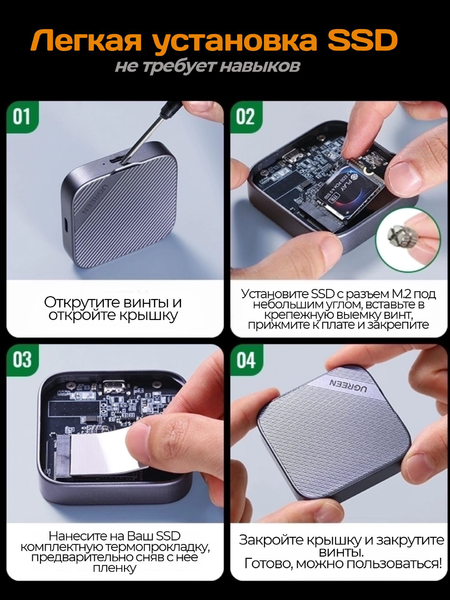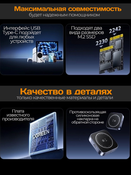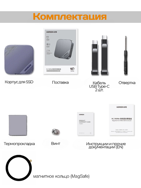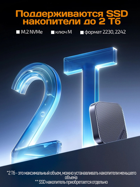 Внешний бокс UGREEN для дисков SSD NVMe PCI-E M-ключ